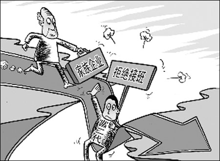 最令20多年來創(chuàng)業(yè)一代民企老板揪心的事情,莫過于 家族企業(yè)“傳位”難。調(diào)查顯示,有60%的“富二代”不愿接班。商界人士則認(rèn)為,就現(xiàn)代企業(yè)的管理而言,經(jīng)理人模式將成大勢。關(guān)鍵取決于民企自身的態(tài)度和理念。