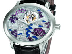 梵克雅寶午夜東方花園陀飛輪鉑金腕表在珍貴寶石的烘托下,面盤上恬靜神秘的東方園林通過兩種琺瑯技法呼之欲出。蛋面磨光琺瑯和大明火琺瑯相輔相成,勾繪出東方園林的迷人神韻,m瑯技藝要求超高的溫度和卓越的工藝。這款限量版鉑金腕表搭配鱷魚皮表帶,僅售8枚。表殼:鉑金材質(zhì),圓形表殼,藍寶石水晶底蓋,可顯示機芯運轉(zhuǎn)。表盤:大明火和蛋面磨光琺瑯,鑲嵌鉆石、藍寶石,棒形指針,不設(shè)時間刻度。