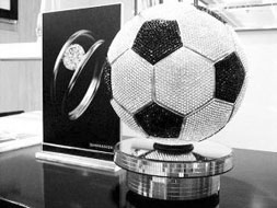 世界上最昂貴的足球在哪里?日前著名的珠寶設(shè)計家雅爾·西曼斯基制造了一個世界杯紀念足球。讓人咂舌的是,這個足球價值160萬歐元(超過千萬元人民幣),因為它的表面全部是由昂貴的鉆石鑲嵌而成的。這個珍貴的足球鑲鉆3500克拉,重2.2千克。目前這個鑲滿鉆石的足球陳列在西曼斯基的商店里,他將會將這件寶物拍賣,然后將所得捐給當(dāng)?shù)氐拇壬茩C構(gòu)。