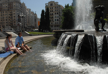 受內(nèi)地大陸性氣候影響,西班牙大部分地區(qū)夏季日照時間長,氣候炎熱,有時氣溫高達(dá)38攝氏度。為防暑降溫,西班牙許多公共場所安裝了類似溫室里的一種噴霧裝置,為酷熱盛夏里的人們帶來一份舒適和愜意。 這種裝置分電風(fēng)扇噴霧和管道噴霧兩款,在首都馬德里的地鐵站、露天餐館、酒吧和街道上都能看到。馬德里北部桑切斯·羅梅羅商業(yè)中心有一家西班牙地方特色菜餐館。餐廳分室內(nèi)和室外兩部分,室內(nèi)有空調(diào),室外的露天平臺上就安裝著噴霧降溫裝置。 數(shù)百平方米的二層露天平臺上擺放了約50張餐桌,餐桌上方約兩米高的地方平行安裝了三行像細(xì)水管一樣的裝置,水管上每隔十余厘米就有一個小孔,每隔幾分鐘就從中噴出霧氣,有時略帶一些小水珠。霧氣能噴到一米多遠(yuǎn)的地方,覆蓋了整個露天餐廳。西班牙的自來水可直接飲用,所以用餐者不會在意噴出的霧水落在餐桌或身上,而是感到一種“由天而降”的涼爽和愜意。 馬德里市中心美術(shù)館樓下的露天咖啡廳也有同樣的裝置。幾個涼棚、一些小桌,人們坐在那里邊聊邊品咖啡,時而從上噴下的霧氣,不知不覺已融入街邊的風(fēng)景。 在市中心一條行人較多的街道上,路邊也安裝了一條200多米長的噴霧管道,不時噴出的霧水給過往行人帶來了意外的驚喜和涼意。 西班牙還有一種帶噴霧的電風(fēng)扇,與落地電風(fēng)扇類似,但更高更大。這種噴霧電風(fēng)扇高約兩米,風(fēng)扇直徑約60厘米,風(fēng)扇中央有一個旅行杯大小的塑料小水桶,里面裝著水,打開風(fēng)扇開關(guān)就可吹風(fēng)和噴霧。 馬德里“美洲大道”地下中轉(zhuǎn)站安裝的就是這種降溫裝置。這是一個地鐵、市內(nèi)公交和長途汽車地下中轉(zhuǎn)站,由于空間大,又與地面相通,因此無法安裝空調(diào)。安裝噴霧電風(fēng)扇同樣起到了降溫作用,讓人感到?jīng)鏊孢m。 為順利度過夏季,西班牙政府還重視植樹和鋪設(shè)草坪,同時使用較細(xì)的噴水管澆灌。水霧慢慢噴在植物上,既灌溉又降溫,還節(jié)約用水。
