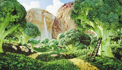 日前,英國攝影師Carl Warner開創(chuàng)了一種獨特的風(fēng)景攝影形式:畫面所呈現(xiàn)的色彩和形狀都是用蔬菜和水果制作而成。他把這種特殊的藝術(shù)形式命名為“食物風(fēng)景攝影”。他的作品因其獨特的創(chuàng)意、濃郁的夢幻氣息、別出心裁的構(gòu)圖,讓人震撼。