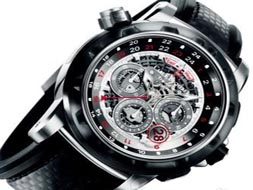 不但可以顯示時間,而且采用了4種物料混合搭配,將鈀金屬、鈦金屬、陶料及橡膠4種物料的特性盡情發(fā)揮,展現(xiàn)出高科技設(shè)計概念,并透過啞黑色、金屬光澤及鮮紅色調(diào)的對比,烘托出表盤的時間顯示,在狹小的空間中整合多項復雜功能。