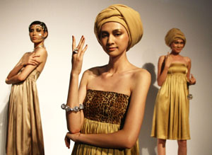 日前,世界首個(gè)鉆石品牌Forevermark(TM)永恒印記“SHINING LIGHT”鉆飾設(shè)計(jì)大賽獲獎(jiǎng)作品全球首展在北京中央美術(shù)學(xué)院舉辦。30位來自非洲南部的年輕設(shè)計(jì)師以25000顆總重達(dá)630克拉鉆石設(shè)計(jì)的美鉆飾品由模特們佩戴向觀眾展示。圖為模特在展示鉆石飾品。