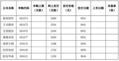 9月新股發(fā)行一覽表