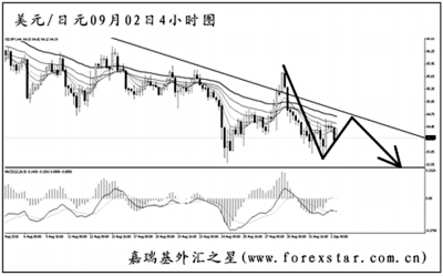 ▲英鎊兌美元近來的走勢明顯比歐元疲弱,匯價沿圖中的下降通道完好下行。短線英鎊小幅創(chuàng)出新低,下跌動能減弱,但均線系統(tǒng)的壓制作用仍然完好。關(guān)注通道上沿1.5490一線的阻力作用,有效突破通道后可以采取做多的思路,預(yù)計后市英鎊回歸漲勢的希望較大。