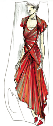 設(shè)計(jì)師鄒游為VOGUE五周年創(chuàng)作時(shí)裝的設(shè)計(jì)圖稿。 |