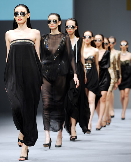 浙江漢帛集團旗下的3位大陸新銳設計師張馳、劉璐、王慶峰近日在臺北聯(lián)合舉辦時尚服裝作品發(fā)布會,帶來現(xiàn)代氣息與絢麗奢華相結合的最新設計。圖為模特在展示劉璐設計的時裝作品。新華社發(fā)
