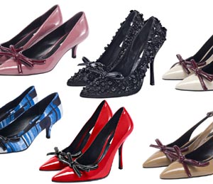 裝飾,靈感源自20世紀(jì)50年代的流行風(fēng)潮。尖頭、細(xì)高跟是“Fiocchetto”女鞋的主要特點(diǎn),作為2010/11秋冬系列而推出!癋iocchetto”女鞋采用多種材質(zhì)制成,