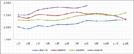 2010年8月北京區(qū)域二手房市場(chǎng)月度租、售價(jià)比較