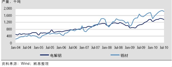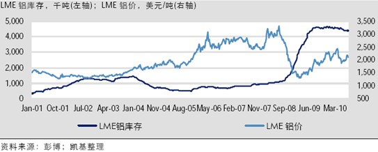 2010年預(yù)計(jì)將有416.8萬噸新增電解鋁產(chǎn)能投產(chǎn),同比增長40%。國內(nèi)原有電解鋁廠商限產(chǎn)、減產(chǎn),新建產(chǎn)能集中投產(chǎn),2010年下半年國內(nèi)電解鋁庫存壓力會進(jìn)一步增加。 5月份國家發(fā)改委要求取消電解鋁等行業(yè)的優(yōu)惠電價(jià),將限制類企業(yè)電價(jià)加價(jià)標(biāo)準(zhǔn)由現(xiàn)行每千瓦時(shí)0.05元提高到0.10元。目前國內(nèi)噸電解鋁電耗在14,200千瓦時(shí),電價(jià)平均上調(diào)0.10