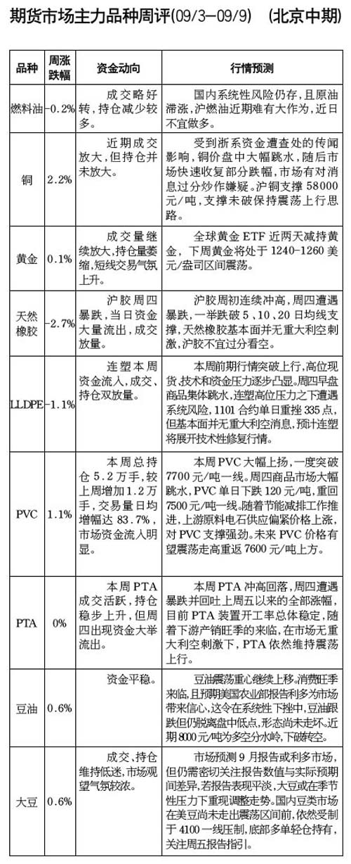 期貨市場主力品種周評[09.03-09.09]