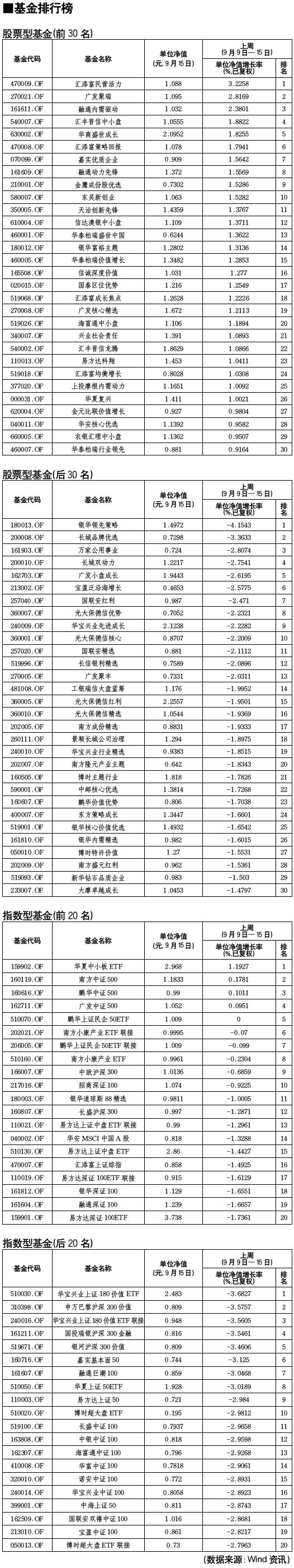 股票型基金排行榜[2010-09-17]