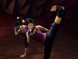 其具體形式是將拳擊、空手道、跆拳道、功夫,甚至一些舞蹈動作混合在一起,即在激烈的音樂中,進(jìn)行一些拳擊和跆拳道的基本拳法和腿法練習(xí)。健身者在出拳、踢腿的過程中,隨著音樂揮動雙拳,動作剛勁有力,讓健身者盡情地發(fā)泄,盡情地出汗,并在不知不覺中減掉全身多余的脂肪。