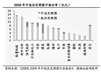 變頻器和高效電機(jī)是節(jié)能減排的先鋒。渤海證券發(fā)布的報(bào)告稱,我國發(fā)電機(jī)耗電量占總發(fā)電量的66%以上,發(fā)電機(jī)運(yùn)行效率低于國外先進(jìn)水平約10至20個(gè)百分點(diǎn),運(yùn)行效率低下造成的電量浪費(fèi)幾乎相當(dāng)于三個(gè)三峽電站,因此提高發(fā)電機(jī)運(yùn)行效率是重要的節(jié)能措施。變頻器調(diào)速和使用高效電機(jī)是可行的兩種節(jié)能方式,高壓變頻器市場(chǎng)規(guī)模近千億,未來兩年將保持30%以上增速,但目前通用領(lǐng)域價(jià)格戰(zhàn)硝煙彌漫,市場(chǎng)格局仍在形成中;中低壓變頻器仍處于進(jìn)口替代過程,國產(chǎn)化率將逐步提高,未來有望出現(xiàn)國內(nèi)的龍頭企業(yè)。目前高效電機(jī)市場(chǎng)應(yīng)用比例仍較低,但在最低能效標(biāo)準(zhǔn)及補(bǔ)貼政策支持下,我們認(rèn)為高效電機(jī)市場(chǎng)即將啟動(dòng),未來市場(chǎng)應(yīng)用比例將大幅上升。