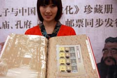 今年是孔子誕辰2561周年,中國(guó)郵政日前發(fā)行《孔廟、孔府、孔林》郵票一套三枚,中國(guó)集郵總公司同步發(fā)行《孔子與中國(guó)傳統(tǒng)文化》大型紀(jì)念珍藏冊(cè),全球最大發(fā)行量為兩萬冊(cè)。