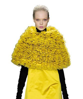 2010年秋冬的T臺(tái)趨勢(shì)在熱捧斗篷這一復(fù)古潮流,風(fēng)格多變,長(zhǎng)短不一、款式別致,煥發(fā)出有別傳統(tǒng)的更濃郁韻味,也許有人覺(jué)得很搞怪,但優(yōu)雅的作品也并不少見(jiàn)。