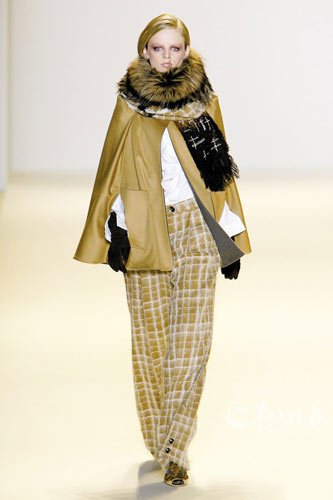 WESTWOOD,她無(wú)論春夏秋冬都有類似的作品推出,典范是其絕對(duì)不變的格子布料。其實(shí)很多人都總結(jié)出斗篷的好處,就是讓女人能掩蓋各個(gè)地方的“鬼祟肉”,只是如果你身材實(shí)在是太矮小的話,就千萬(wàn)不要亂穿了,記住,斗篷的穿著還是有一定講究的,在決定穿之前,你想想是不是應(yīng)該將個(gè)性糅合在其中。