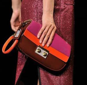搭配衣服顏色的粉色橙色相間的漆皮手包