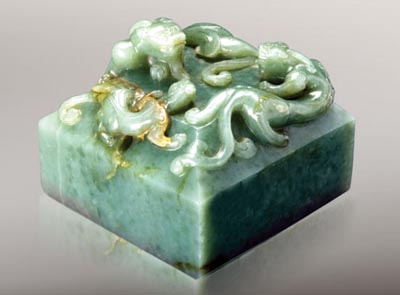 6月27日,一方清代乾隆皇帝的青玉螭龍鈕在臺(tái)灣宇珍國(guó)際藝術(shù)有限公司的拍場(chǎng)上,拍出了4.825億新臺(tái)幣(約合人民幣1.018億元)的高價(jià)。這方璽印的成交價(jià)創(chuàng)造了中國(guó)玉器皇帝璽印拍賣(mài)的新紀(jì)錄。