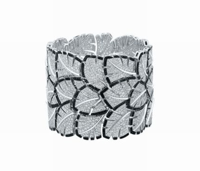 香奈兒以羽毛為主題,第三度參加巴黎古董雙年展 (Biennale des Antiquaires),該主題的靈感來自于香奈兒女士于 1932 年發(fā)表的“鉆石珠寶系列” (“Bijoux de Diamants”)。 “Eventail”手鐲,以18K白金打造,鑲嵌2316顆總重達17克拉的明亮式切割白鉆和873顆總重達3.5克拉的明亮式切割黑鉆。