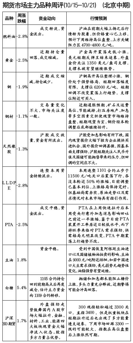 期貨市場(chǎng)主力品種周評(píng)[10.15-10.21]
