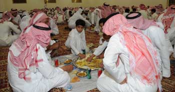 參加婚禮的人都來自于同一部落,因為,新郎和新娘必須是同一部落。由于部落內(nèi)幾乎每天都有結(jié)婚的人,因此,夜深后參加婚禮成為沙特人的主要夜生活方式之一。