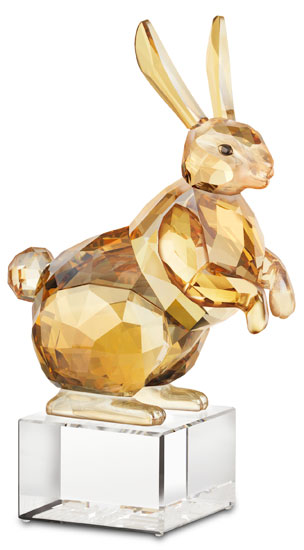 為慶祝2011年兔年的來臨,施華洛世奇以精致閃爍的仿水晶塑像描繪這種深具象征意義的動物及其生肖同伴。 每年,施華洛世奇都會根據(jù)各生肖的特性推出一組三款的動物作品,直至2012年,整個Chinese Zodiac系列作品全部登場。繼2009年推出的“虎”、“馬”及“狗”后,三款充滿喜悅及優(yōu)美特性的全新作品——“兔”、“羊”及“豬”將于2010年隆重登場。