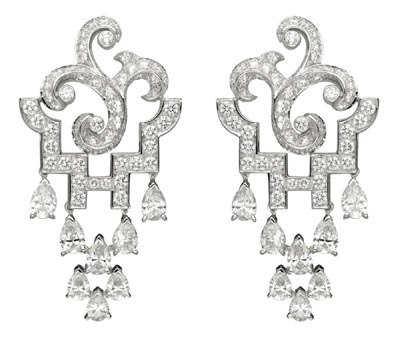 在這一以自然為主題的法式花園風(fēng)格的高級(jí)珠寶系列中,Pergola項(xiàng)鏈從蔓藤中汲取靈感,祖母綠打造而成的珠飾串連成細(xì)致的蔓藤,隨著由鑲滿(mǎn)鉆石的飾釘鑲座組成的藤架攀爬,不對(duì)稱(chēng)藤蔓設(shè)計(jì),呈現(xiàn)出常春藤蔓相互交纏、彼此傾訴的美態(tài)。優(yōu)雅且饒富生命力。