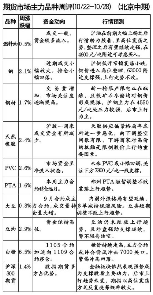 期貨市場主力品種周評[]10.22-10.28