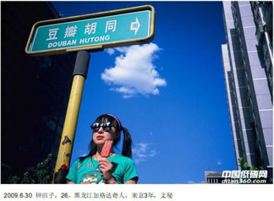 于是,從2009年6月1日開始到2010年5月31日,盧為薇和她的另外一個朋友每天都在北京拍一張照片。照片里面會有一個北京的路牌,當(dāng)天空是藍(lán)色時,她們還會請一位路人戴上一副滑稽的墨鏡出鏡。