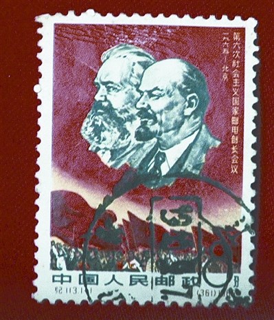 今年71歲的黃仕恒老先生,是一名興趣廣泛的收藏愛好者。這枚紅色的正版郵票是馬克思和列寧的頭像,面值為8分錢,下方“紀(jì)113·3—1[361]1965”,從郵票目錄上查到:這是第六次社會主義國家郵電部長會議的紀(jì)念郵票,1965年6月21日發(fā)行,影寫版,設(shè)計:盧天驕。