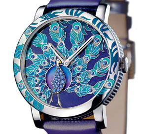 Boucheron近期推出一款孔雀腕表,生龍活現(xiàn)的雕刻設(shè)計(jì)完美至極,仿佛這是只真孔雀,躍然表中,等到飛翔的那一刻。