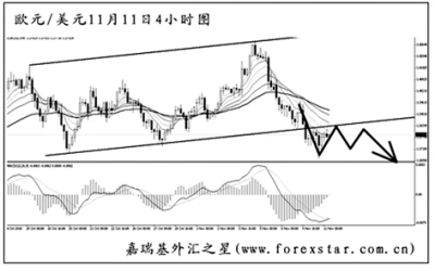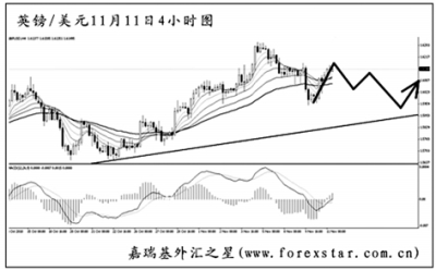 ▲歐元兌美元小幅創(chuàng)出新高之后急速下挫,已經(jīng)將順勢(shì)旗形通道的下沿跌破。目前匯價(jià)正在考驗(yàn)日線圖道氏理論顯著低點(diǎn)的支撐1.3710,跌破后還將挑戰(zhàn)均線系統(tǒng)的依托,所以歐元要想真正轉(zhuǎn)為跌勢(shì)必須要有效站穩(wěn)在1.3600下方。從力度上分析,歐元調(diào)整過后繼續(xù)下調(diào)的希望較大。