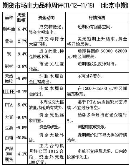 期貨市場(chǎng)主力品種周評(píng)[11.12-11.18]