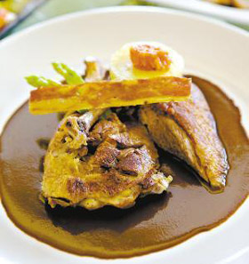 鴨肉入口滑嫩,完全沒有腥味,濃香可口。品嘗血鴨后,侍者送給記者一張紀(jì)念卡片,正面是德萊爾制作血鴨油畫,背面印有編號(hào):1088268。原來,由于血鴨聲名遠(yuǎn)揚(yáng),在巴黎出現(xiàn)假冒產(chǎn)品。為“防偽”,每只鴨子都編了號(hào)。