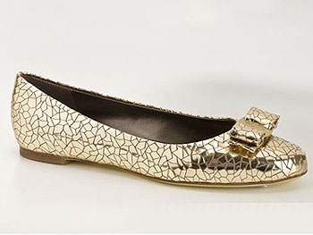Miranda)設(shè)計(jì)的鏡面楔跟涼鞋,并重新詮釋2005年專為亞洲性感女星莫文蔚打造的原款設(shè)計(jì),選用奢華珍貴的新型金屬光澤皮革,表面綴飾不規(guī)則形狀的鏡面小流蘇,而經(jīng)典的Vara蝴蝶結(jié)亦采用相同材料制作,令這款芭蕾平底鞋更添閃亮效果。