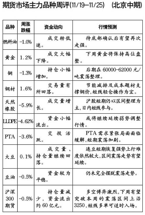 期貨市場(chǎng)主力品種周評(píng)