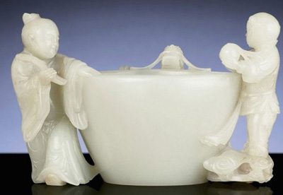 佳士得中國藝術拍品 清乾隆 白玉雙童耳洗