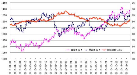 根據(jù)永安期貨研究院鄭若金的分析,自2001年10月2日以來,雖然國際油價與美元指數(shù)一直具有較高的負相關性,但是這種關系不是簡單的反向關系。2010年11月4日,美元指數(shù)觸及75.631,創(chuàng)年內(nèi)新低,但隨后因歐債危機重燃,美元指數(shù)終止下跌態(tài)勢轉(zhuǎn)而震蕩上行。