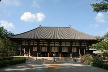 奈良最著名的大寺要屬東大寺,這里還是鑒真大師東渡后為圣武太上皇、光明太上皇后、孝謙天皇受戒之地。而東大寺最享有盛名的建筑要數(shù)大佛殿,殿內(nèi)的盧舍那佛像是日本最大的銅佛,高近15米。當(dāng)年為給大佛鍍金共使用了約375公斤黃金和2110公斤水銀。不過,如今的大佛殿和大佛都是江戶時(shí)代重建的,大殿體積只相當(dāng)于當(dāng)年體積的2/3。盡管如此,在奈良西郊當(dāng)年的皇宮正殿,也能夠清楚地看到東大寺大佛殿巨大的屋頂,大佛殿在近代以前一直是世界最高大的木造建筑物。