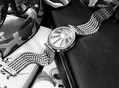 Hour高級珠寶腕表,結(jié)合極致奢華、優(yōu)雅經(jīng)典與鬼靈精怪等多重個性,將水平、傾斜或垂直三種不同的時計面容合而為一,呈現(xiàn)彈指之間即可轉(zhuǎn)換時間容顏的魔幻閱時方式,鑲嵌總數(shù)超過300顆的美鉆,完全展現(xiàn)出Piaget伯爵珠寶鑲嵌大師的絕世技藝。