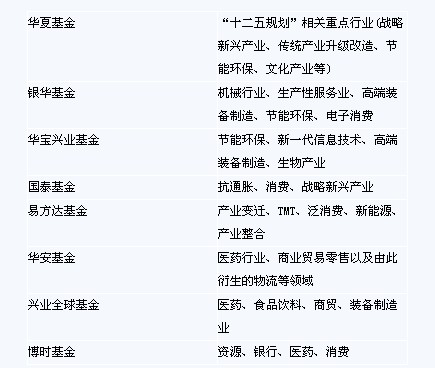 2010年,在大盤(pán)股一蹶不振的同時(shí),市場(chǎng)上演了一出中小盤(pán)股狂歡的“獨(dú)角戲”。2011年,抓住結(jié)構(gòu)性行情仍是八家金;鸸镜囊恢虏呗,但在周期性行業(yè)還是消費(fèi)或新興產(chǎn)業(yè)之間,各公司的投資偏好還存在差異。