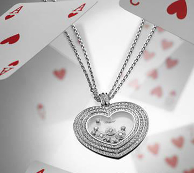 艷麗的快樂鉆石吊墜鑲飾了三行鉆石,專為盛大的場合而設(shè)計,貼靠在雅致的低胸衣領(lǐng)上閃耀著耀目光芒。燦爛的鉆石隨著滿載愛意的心臟一起跳動。