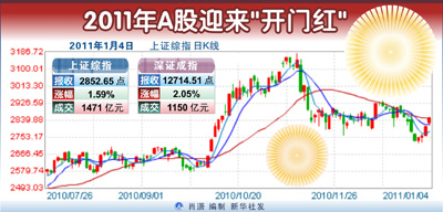 1月4日,2011年首個(gè)交易日,A股迎來了開門紅。地產(chǎn)股全面爆發(fā),帶動(dòng)滬指收紅。市場(chǎng)的強(qiáng)勢(shì)表現(xiàn)使得多數(shù)分析師對(duì)后市比較樂觀,大盤短期仍然有望震蕩向上,但亦有機(jī)構(gòu)提醒投資者需注意一日游行情的可能性。