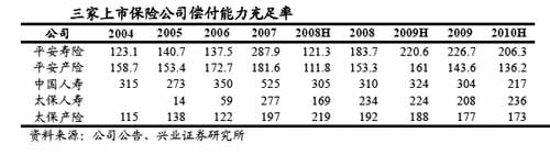 然而興業(yè)證券并不認(rèn)為這會(huì)成為保險(xiǎn)股2011年走強(qiáng)的障礙。該券商表示,當(dāng)前中國(guó)人壽和中國(guó)平安、太保壽險(xiǎn)業(yè)務(wù)償付能力充足率均在200%多的水平,平安產(chǎn)險(xiǎn)和太保產(chǎn)險(xiǎn)償付能力充足率則維持在150%左右的水平,如果三家公司僅為滿足監(jiān)管要求,將產(chǎn)壽險(xiǎn)償付能力充足率保持在150%,則三家公司當(dāng)前資本水平足以支撐未來(lái)2-3年業(yè)務(wù)的發(fā)展。但結(jié)合各家公司歷史償付能力水平和公司發(fā)展的需要,我們認(rèn)為平安和太保產(chǎn)壽險(xiǎn)償付能力充足率水平分別維持在150%和200%較為合理,中國(guó)人壽則可能在250%以上,據(jù)此計(jì)算,中國(guó)平安在2011年有融資需要,如果考慮未來(lái)4-5年的發(fā)展,融資規(guī)模預(yù)計(jì)在400-500億元,太保和國(guó)壽近期沒(méi)有融資需求。