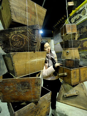 家住重慶市渝中區(qū)枇杷山正街101號(hào)的劉光瑞是一位匾收藏愛好者,他收藏了云、貴、川、渝地區(qū)自明、清以來(lái)的各類匾3000余塊,創(chuàng)辦的重慶巴渝名匾文化藝術(shù)博物館預(yù)計(jì)4月正式開館迎客。圖為一觀眾正在館內(nèi)觀賞各個(gè)時(shí)期刻有字的量具“斗”。