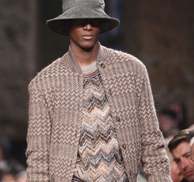 米索尼 (Missoni) 2011秋冬男裝用多變的針織與柔和的漸變色營造出十足的溫暖感,松垮的輪廓、舒適的面料,長長的針織圍巾與遮住眼睛的麂皮軟帽,帶著些閑散不羈的波西米亞情調(diào)。