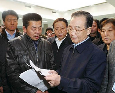 這是2011年1月24日下午。溫家寶總理來(lái)到北京永定門西街國(guó)家信訪局來(lái)訪接待室,來(lái)自天津、吉林、山東、湖北、內(nèi)蒙古、河南、山西、江蘇等8名上訪群眾向溫家寶總理直陳不公與苦痛,總理現(xiàn)場(chǎng)要求隨行的各部委積極督辦,開(kāi)62年建國(guó)史之先河。