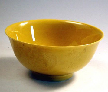 | 清乾隆款黃釉團龍紋碗 |