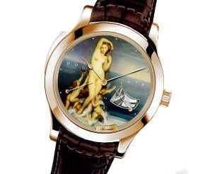 在這枚三問表之上,積家選擇了4幅經(jīng)典畫作之一的愛神維納斯畫像為主題,為Master Minute Repeater三問腕表的表盤進(jìn)行琺瑯彩繪裝飾。盤面的名畫與三問悠揚的敲擊聲更突顯其貴族般的氣質(zhì)。定價超過200萬元,有名畫、有琺瑯,還有豐富而純凈的報時鈴音。藝術(shù)氣質(zhì)超群。